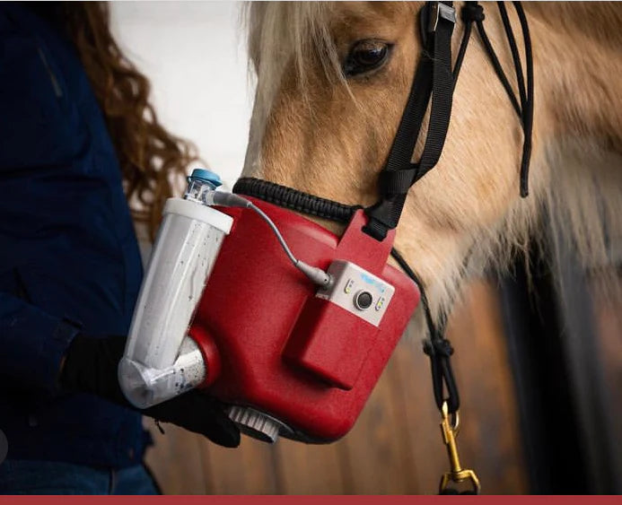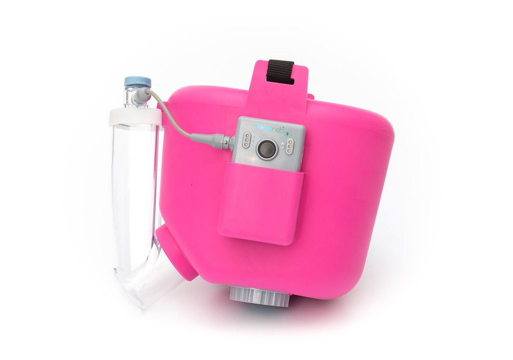 The Flexineb E3 System is a portable silent equine nebuliser for delivering aersolised drugs and natural therapies to the airways of the horse. The soft flexible mask fits over the horse's face and creates a good seal by tightening the strap around the horse's head. A good seal is important to maximize inhalation of nebulised drugs and natural products.